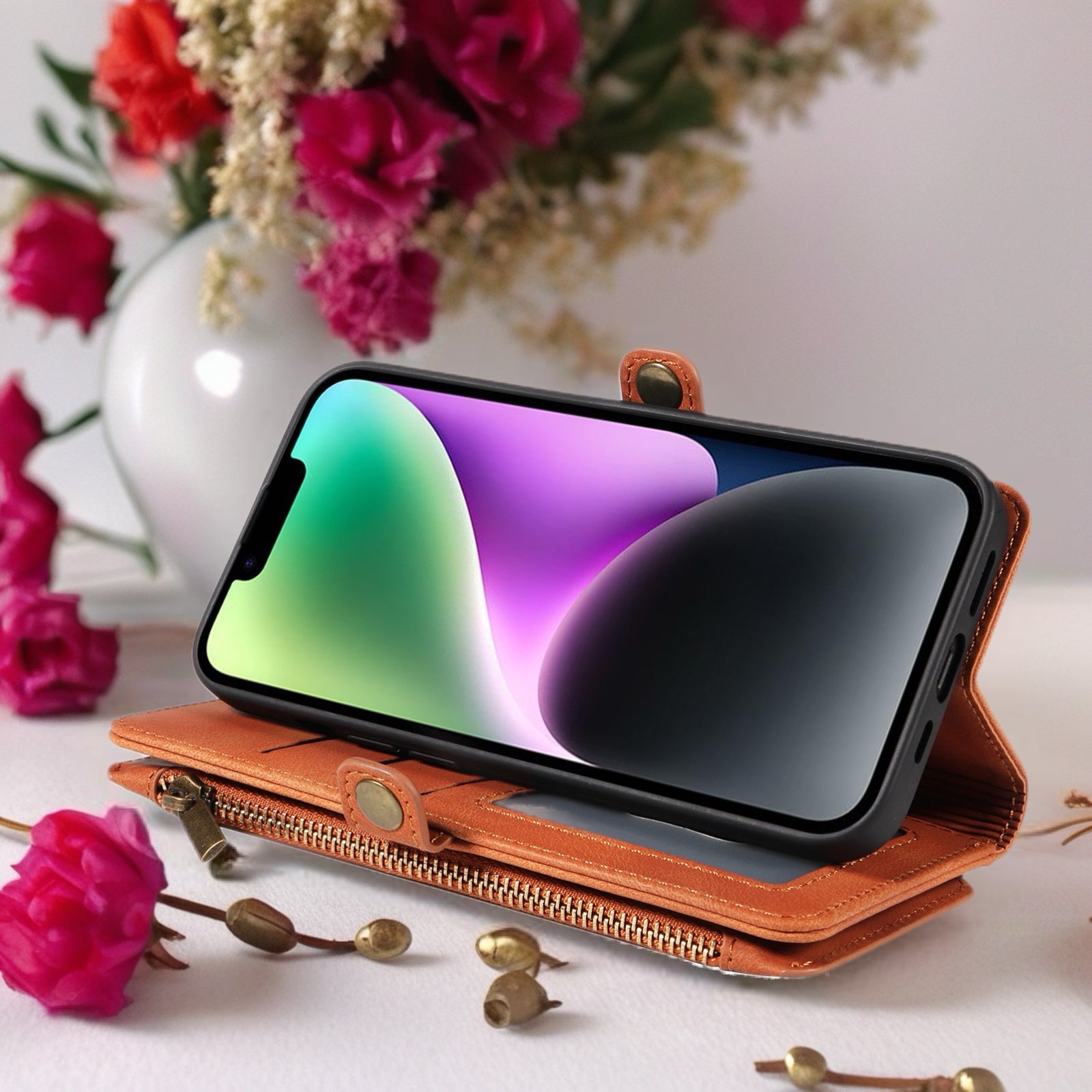 The BlushCarry Leather Wallet iPhone Case Zipper Pocket Card Holder with Wrist Strap is designed for women who love both style and practicality in their everyday essentials. With its soft leather finish and thoughtfully designed storage features, this case transforms your phone into a sophisticated all in one accessory that keeps everything you need within reach.