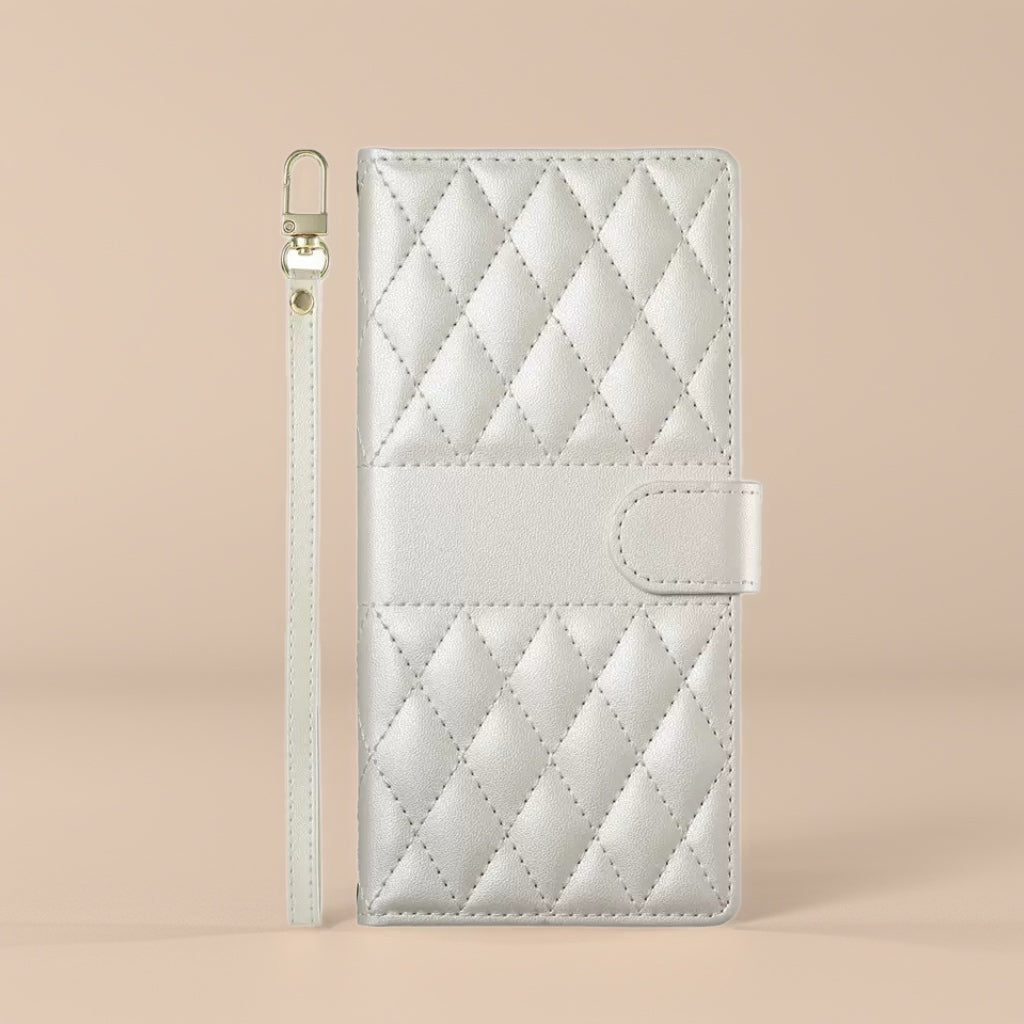This quilted leather wallet case combines premium craftsmanship with functional storage, sturdy protection, and a comfortable grip — the perfect blend of style and practicality for your iPhone.