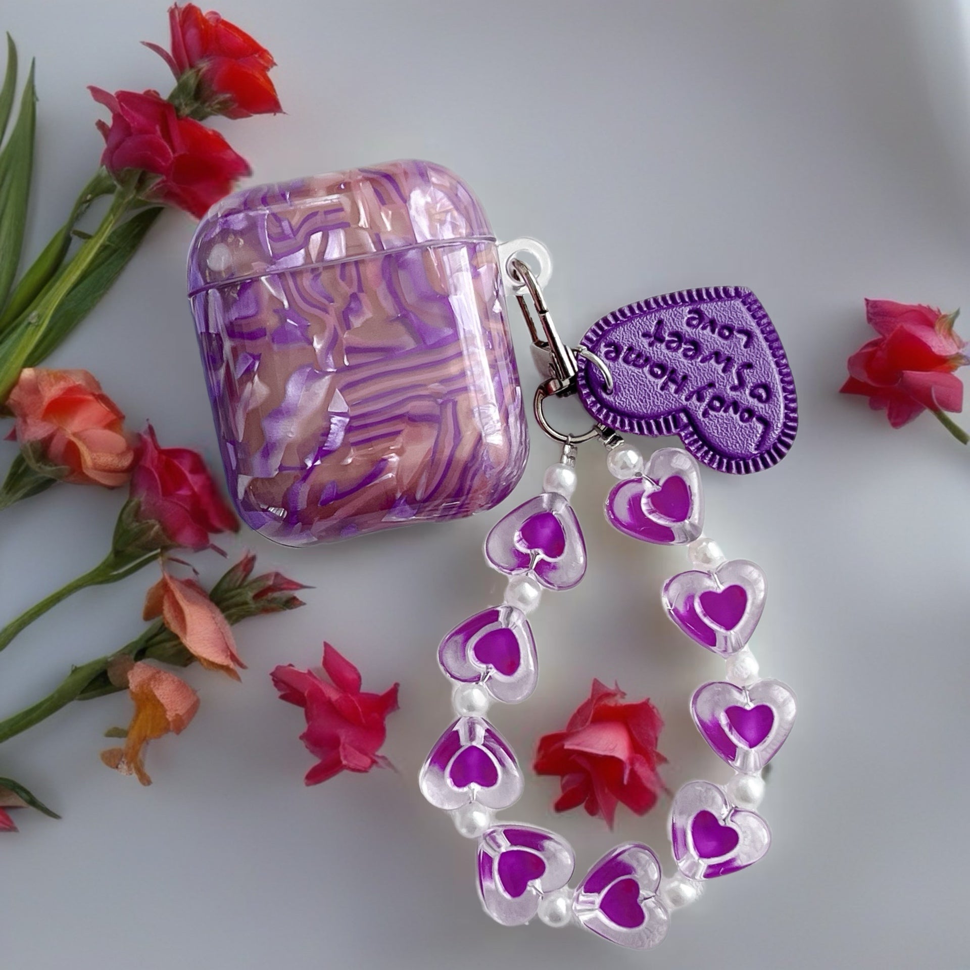 The Purple Sapphire Marble AirPods Case – Glossy Protective Cover with Heart Charm Strap combines stylish design with dependable protection, turning your AirPods into a beautiful everyday accessory. Inspired by elegant marble textures and polished finishes, this case adds a sophisticated and eye-catching look while keeping your earbuds secure.