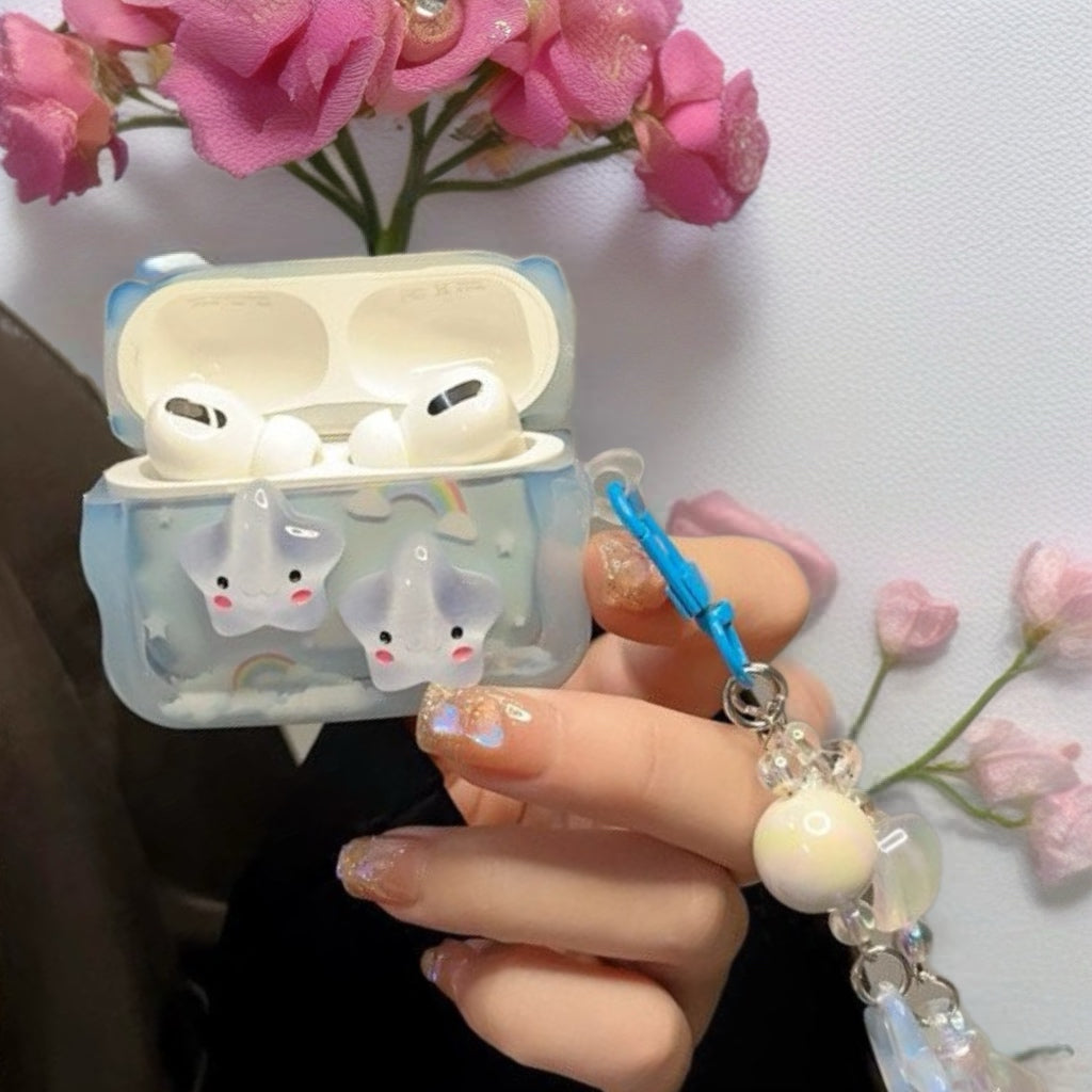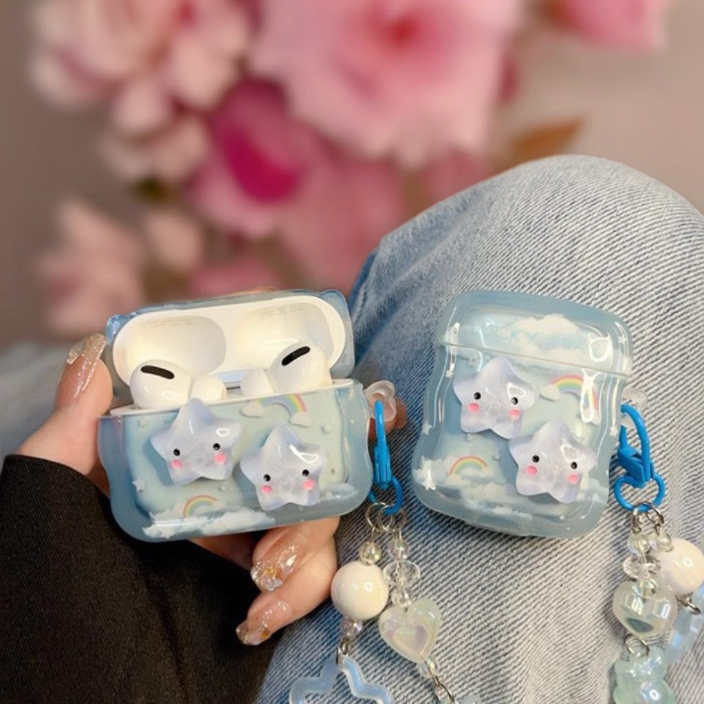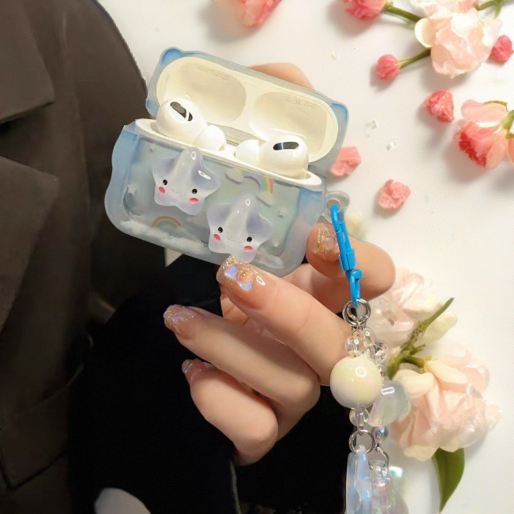 Rainbow Star AirPods Case Glossy Protective Cover with Charm Strap