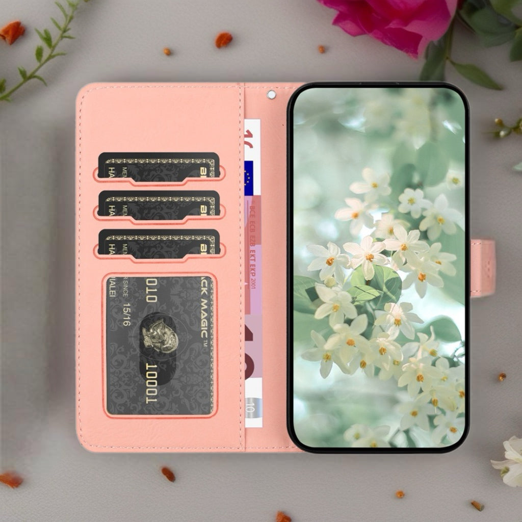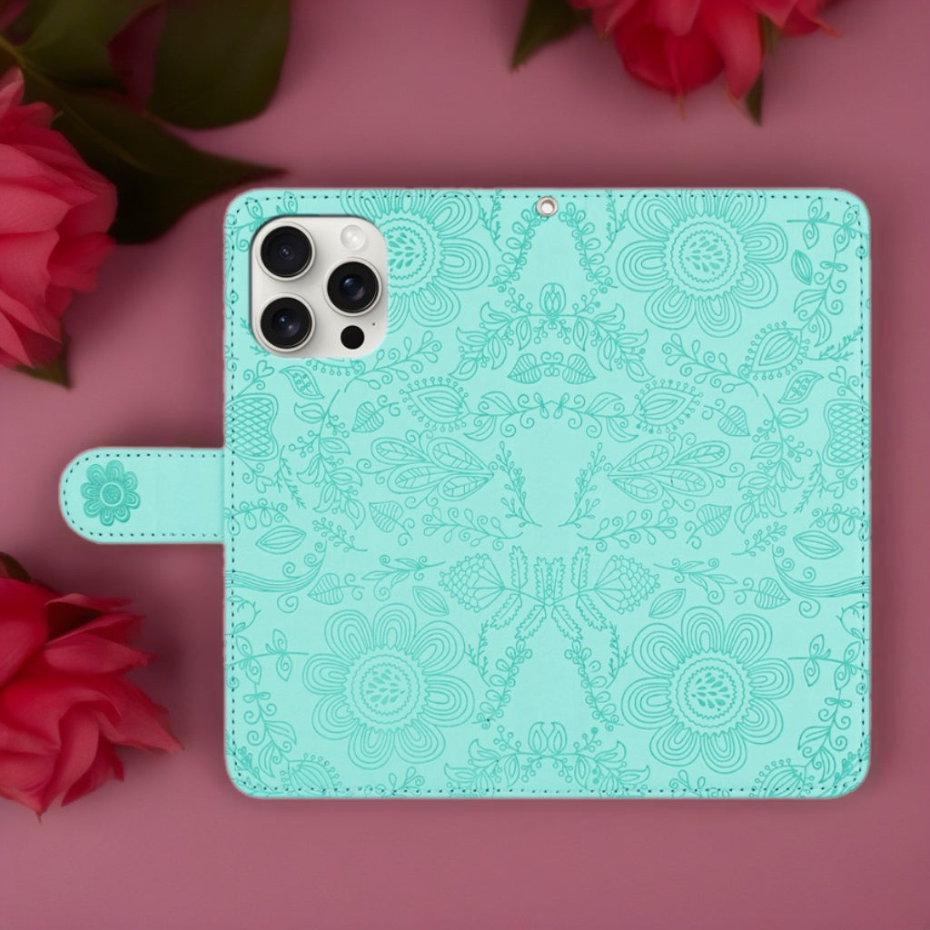 From the moment you hold it, you’ll notice the beautifully embossed floral texture that adds depth and artistry to the smooth PU leather surface. The intricate detailing catches the light subtly, giving your phone a refined, sophisticated presence without being overpowering. It feels classic, confident, and effortlessly beautiful just like the women who carry it.